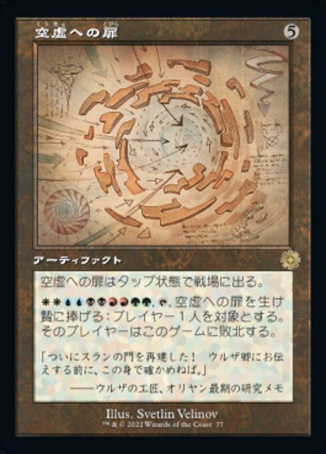 | Rules | Door to Nothingness enters the battlefield tapped. , , Sacrifice Door to Nothingness: Target player loses the game. |