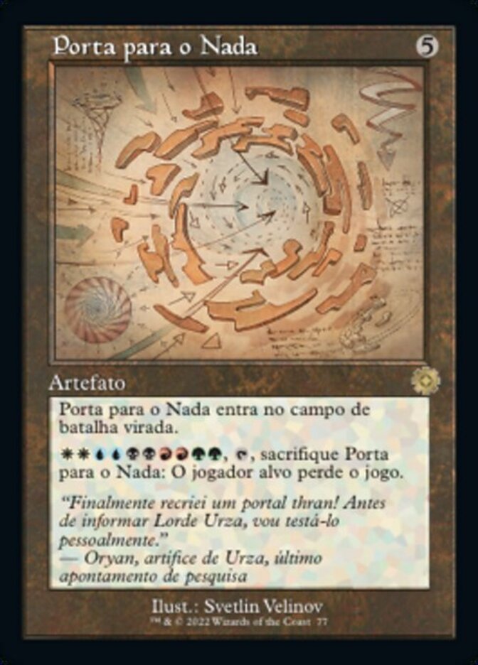 | Rules | Door to Nothingness enters the battlefield tapped. , , Sacrifice Door to Nothingness: Target player loses the game. |