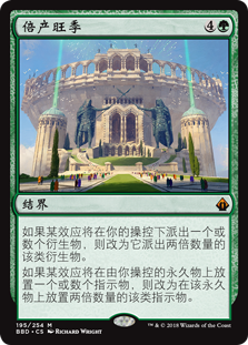 | Rules | If an effect would create one or more tokens under your control, it creates twice that many of those tokens instead. If an effect would put one or more counters on a permanent you control, it puts twice that many of those counters on that permanent instead. |