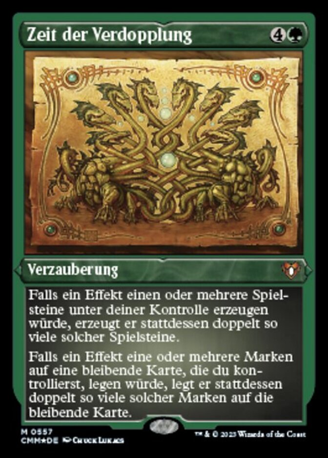 | Rules | If an effect would create one or more tokens under your control, it creates twice that many of those tokens instead. If an effect would put one or more counters on a permanent you control, it puts twice that many of those counters on that permanent instead. |