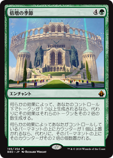 | Rules | If an effect would create one or more tokens under your control, it creates twice that many of those tokens instead. If an effect would put one or more counters on a permanent you control, it puts twice that many of those counters on that permanent instead. |