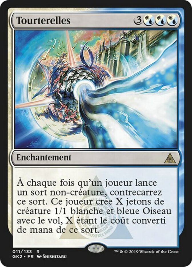 | Rules | ( can be paid with either or .) Whenever a player casts a noncreature spell, counter that spell. That player creates X 1/1 white and blue Bird creature tokens with flying, where X is the spell's mana value. |