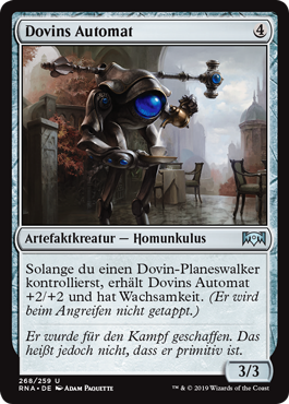 Rules As long as you control a Dovin planeswalker, Dovin's Automaton gets +2/+2 and has vigilance. (Attacking doesn't cause it to tap.)