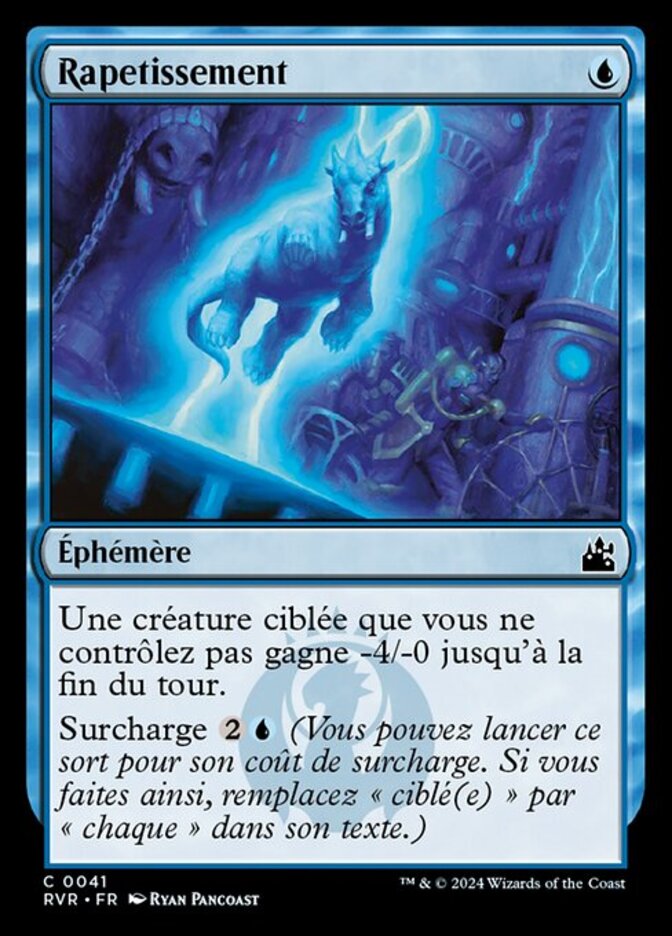 | Rules | Target creature you don't control gets -4/-0 until end of turn. Overload (You may cast this spell for its overload cost. If you do, change its text by replacing all instances of "target" with "each.") |