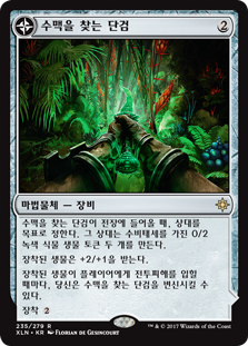| Rules | When Dowsing Dagger enters the battlefield, target opponent creates two 0/2 green Plant creature tokens with defender. Equipped creature gets +2/+1. Whenever equipped creature deals combat damage to a player, you may transform Dowsing Dagger. Equip // (Transforms from Dowsing Dagger.) : Add three mana of any one color. |