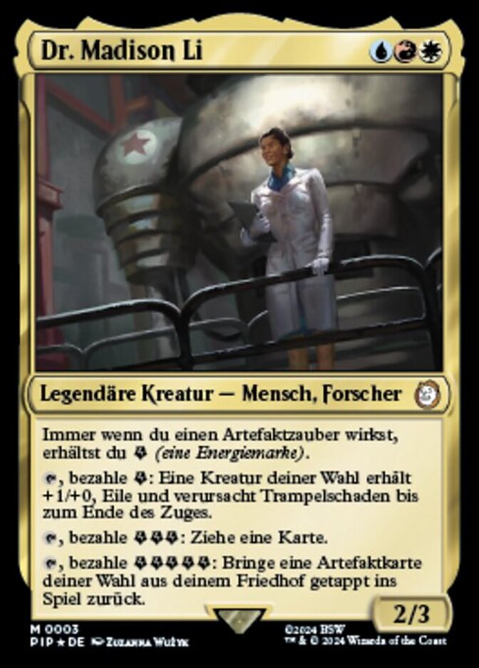 | Rules | Whenever you cast an artifact spell, you get (an energy counter). , Pay : Target creature gets +1/+0 and gains trample and haste until end of turn. , Pay : Draw a card. , Pay : Return target artifact card from your graveyard to the battlefield tapped. |