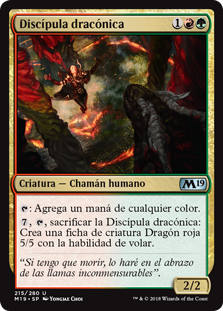 | Rules | : Add one mana of any color. , , Sacrifice Draconic Disciple: Create a 5/5 red Dragon creature token with flying. |
