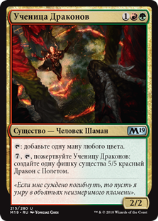 | Rules | : Add one mana of any color. , , Sacrifice Draconic Disciple: Create a 5/5 red Dragon creature token with flying. |