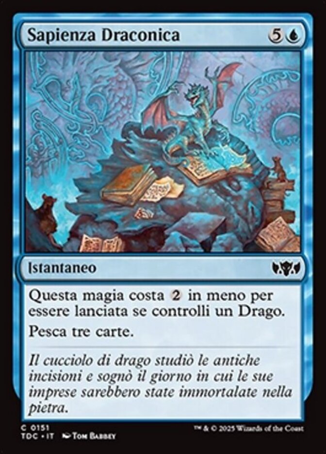 | Rules | This spell costs less to cast if you control a Dragon. Draw three cards. |