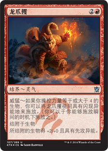 | Rules | Ferocious — If you control a creature with power 4 or greater, you may cast Dragon Grip as though it had flash. (You may cast it any time you could cast an instant.) Enchant creature Enchanted creature gets +2/+0 and has first strike. |