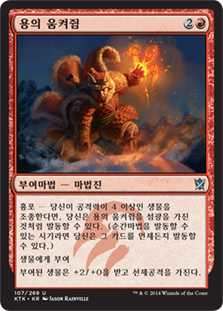 | Rules | Ferocious — If you control a creature with power 4 or greater, you may cast Dragon Grip as though it had flash. (You may cast it any time you could cast an instant.) Enchant creature Enchanted creature gets +2/+0 and has first strike. |