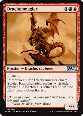 | Rules | Flying Whenever Dragon Mage deals combat damage to a player, each player discards their hand, then draws seven cards. |