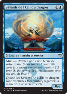 | Rules | Morph—Reveal a blue card in your hand. (You may cast this card face down as a 2/2 creature for . Turn it face up any time for its morph cost.) When Dragon's Eye Savants is turned face up, look at target opponent's hand. |