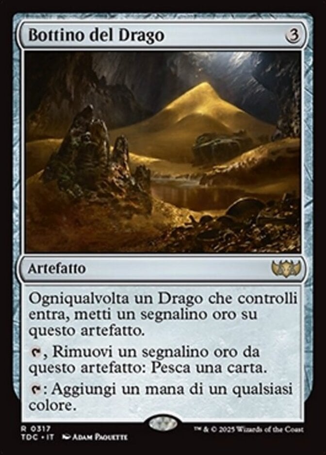 | Rules | Whenever a Dragon enters the battlefield under your control, put a gold counter on Dragon's Hoard. , Remove a gold counter from Dragon's Hoard: Draw a card. : Add one mana of any color. |