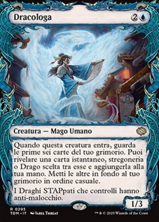 | Rules | When this creature enters, look at the top six cards of your library. You may reveal an instant, sorcery, or Dragon card from among them and put it into your hand. Put the rest on the bottom of your library in a random order. Untapped Dragons you control have hexproof. |