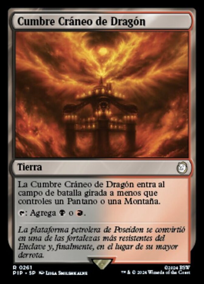 | Rules | Dragonskull Summit enters the battlefield tapped unless you control a Swamp or a Mountain. : Add or . |