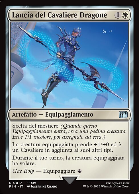 | Rules | Job select (When this Equipment enters, create a 1/1 colorless Hero creature token, then attach this to it.) Equipped creature gets +1/+0 and is a Knight in addition to its other types. During your turn, equipped creature has flying. Gae Bolg — Equip |