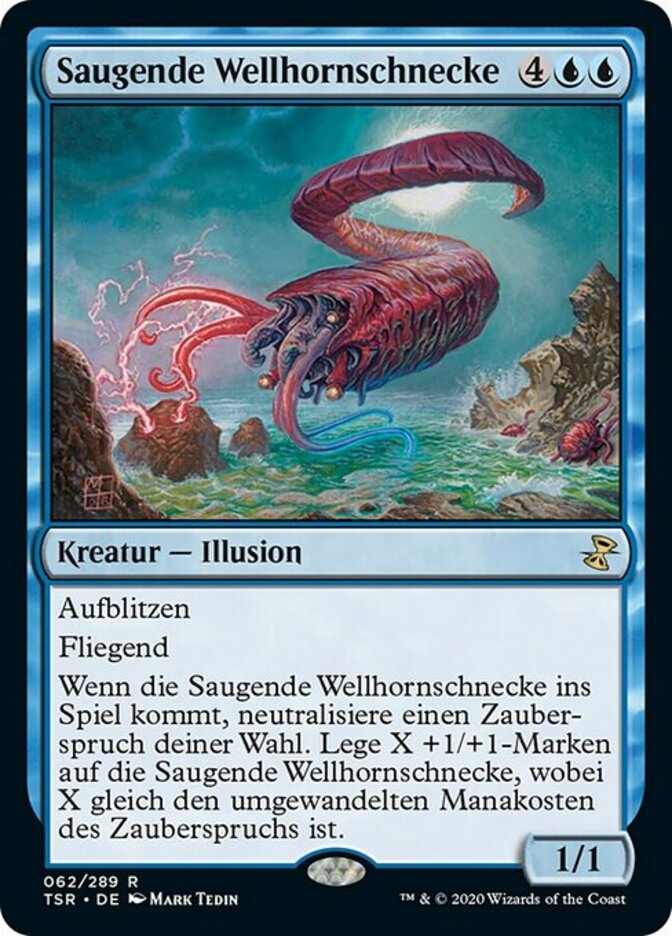 | Rules | Flash Flying When Draining Whelk enters the battlefield, counter target spell. Put X +1/+1 counters on Draining Whelk, where X is that spell's mana value. |