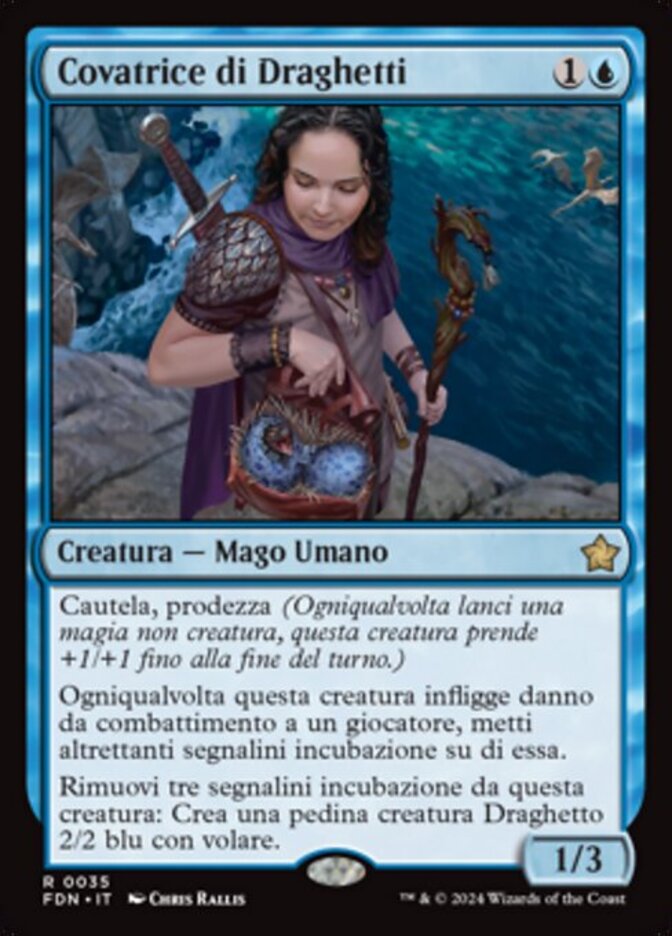 | Rules | Vigilance, prowess (Whenever you cast a noncreature spell, this creature gets +1/+1 until end of turn.) Whenever this creature deals combat damage to a player, put that many incubation counters on it. Remove three incubation counters from this creature: Create a 2/2 blue Drake creature token with flying. |