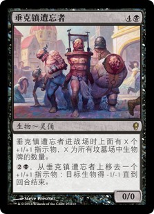 | Rules | Drakestown Forgotten enters the battlefield with X +1/+1 counters on it, where X is the number of creature cards in all graveyards. , Remove a +1/+1 counter from Drakestown Forgotten: Target creature gets -1/-1 until end of turn. |