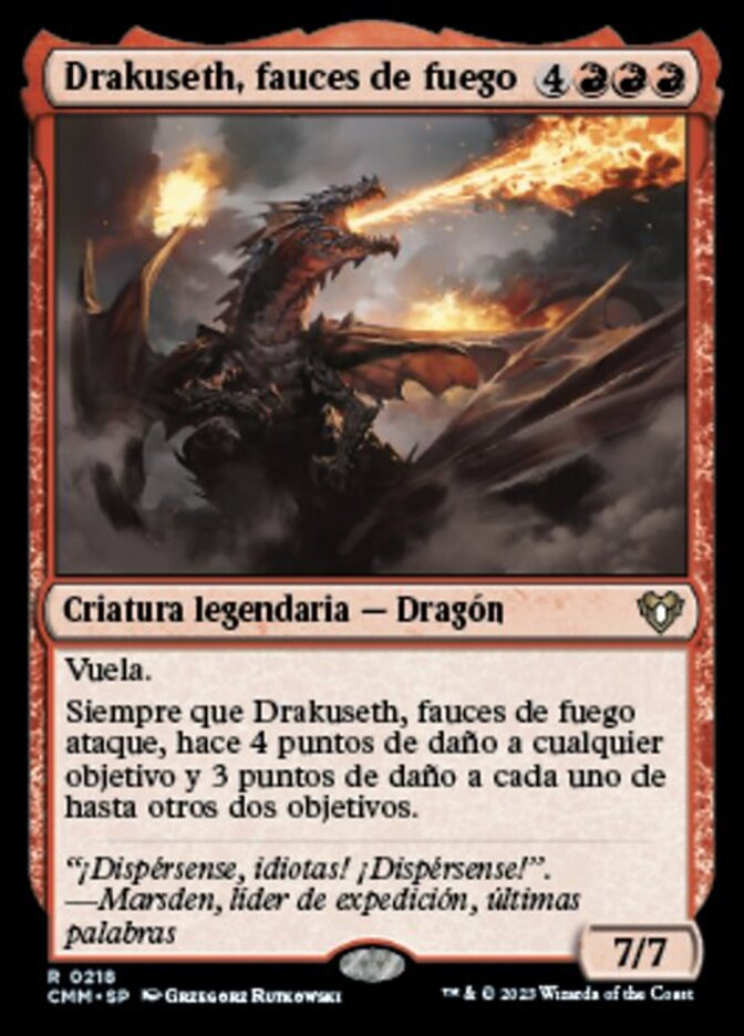 | Rules | Flying Whenever Drakuseth, Maw of Flames attacks, it deals 4 damage to any target and 3 damage to each of up to two other targets. |