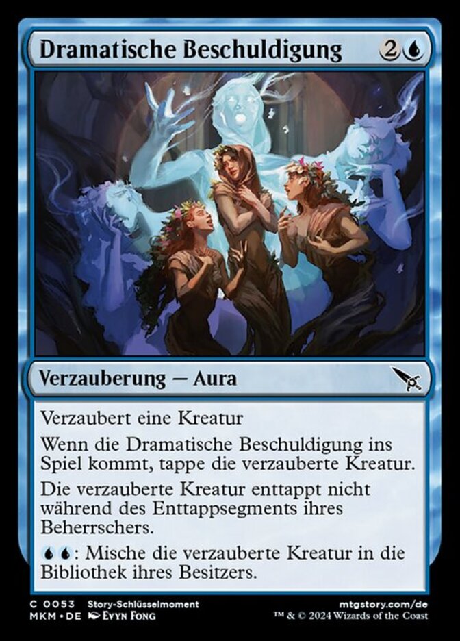 | Rules | Enchant creature When Dramatic Accusation enters the battlefield, tap enchanted creature. Enchanted creature doesn't untap during its controller's untap step. : Shuffle enchanted creature into its owner's library. |
