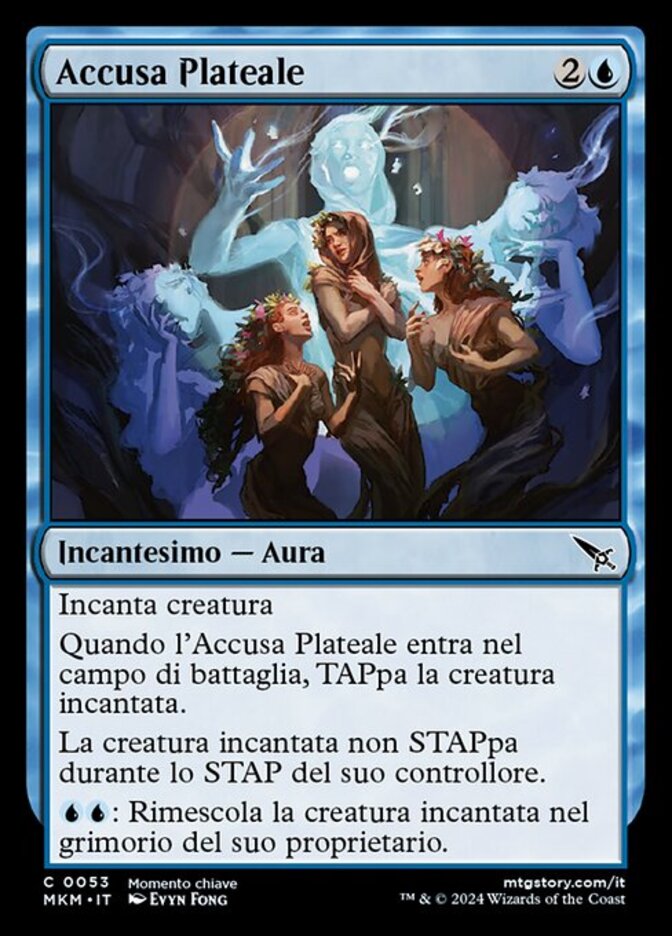 | Rules | Enchant creature When Dramatic Accusation enters the battlefield, tap enchanted creature. Enchanted creature doesn't untap during its controller's untap step. : Shuffle enchanted creature into its owner's library. |