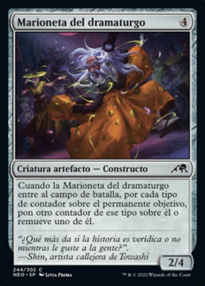 | Rules | When Dramatist's Puppet enters the battlefield, for each kind of counter on target permanent, put another counter of that kind on it or remove one from it. |