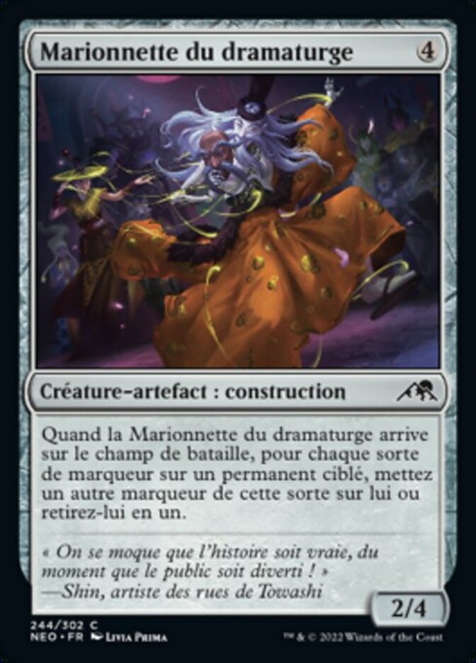 | Rules | When Dramatist's Puppet enters the battlefield, for each kind of counter on target permanent, put another counter of that kind on it or remove one from it. |