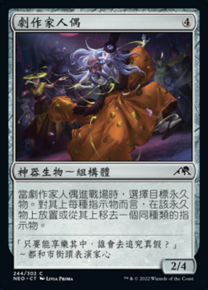 | Rules | When Dramatist's Puppet enters the battlefield, for each kind of counter on target permanent, put another counter of that kind on it or remove one from it. |
