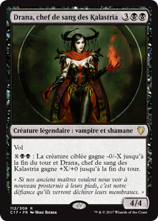 | Rules | Flying : Target creature gets -0/-X until end of turn and Drana, Kalastria Bloodchief gets +X/+0 until end of turn. |