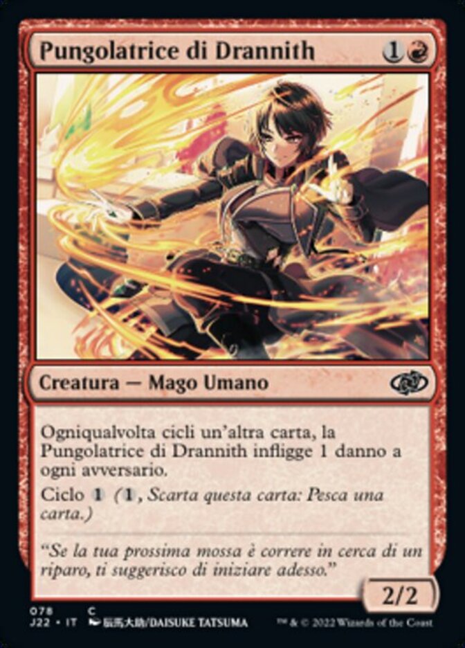 | Rules | Whenever you cycle another card, Drannith Stinger deals 1 damage to each opponent. Cycling (, Discard this card: Draw a card.) |