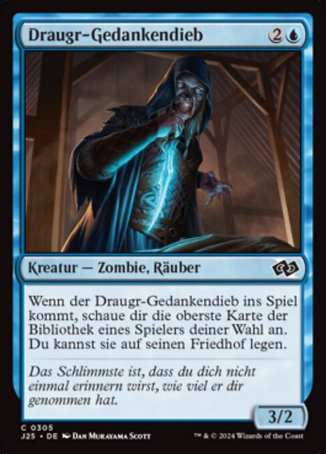 | Rules | When Draugr Thought-Thief enters the battlefield, look at the top card of target player's library. You may put that card into their graveyard. |