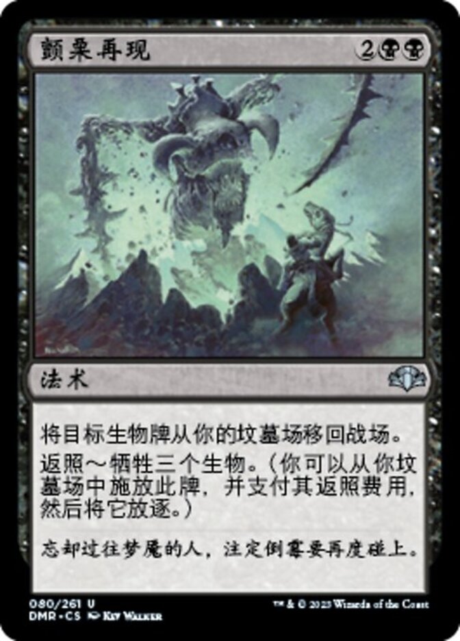 | Rules | Return target creature card from your graveyard to the battlefield. Flashback—Sacrifice three creatures. (You may cast this card from your graveyard for its flashback cost. Then exile it.) |