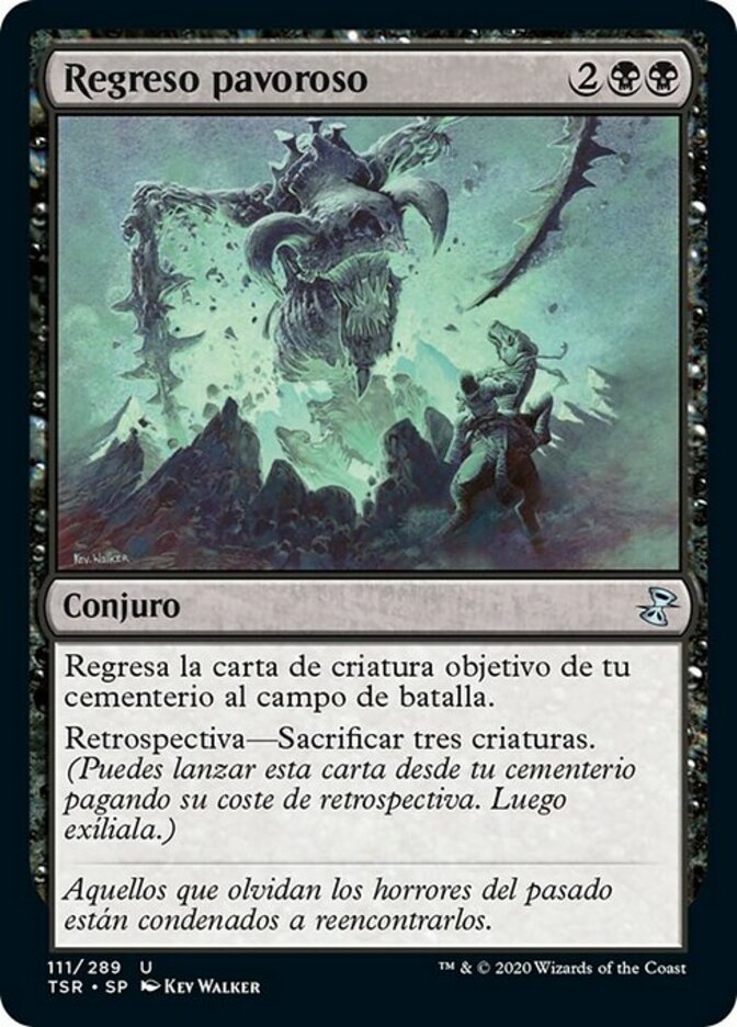| Rules | Return target creature card from your graveyard to the battlefield. Flashback—Sacrifice three creatures. (You may cast this card from your graveyard for its flashback cost. Then exile it.) |