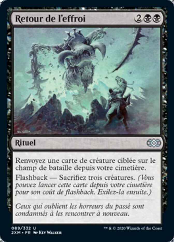 | Rules | Return target creature card from your graveyard to the battlefield. Flashback—Sacrifice three creatures. (You may cast this card from your graveyard for its flashback cost. Then exile it.) |