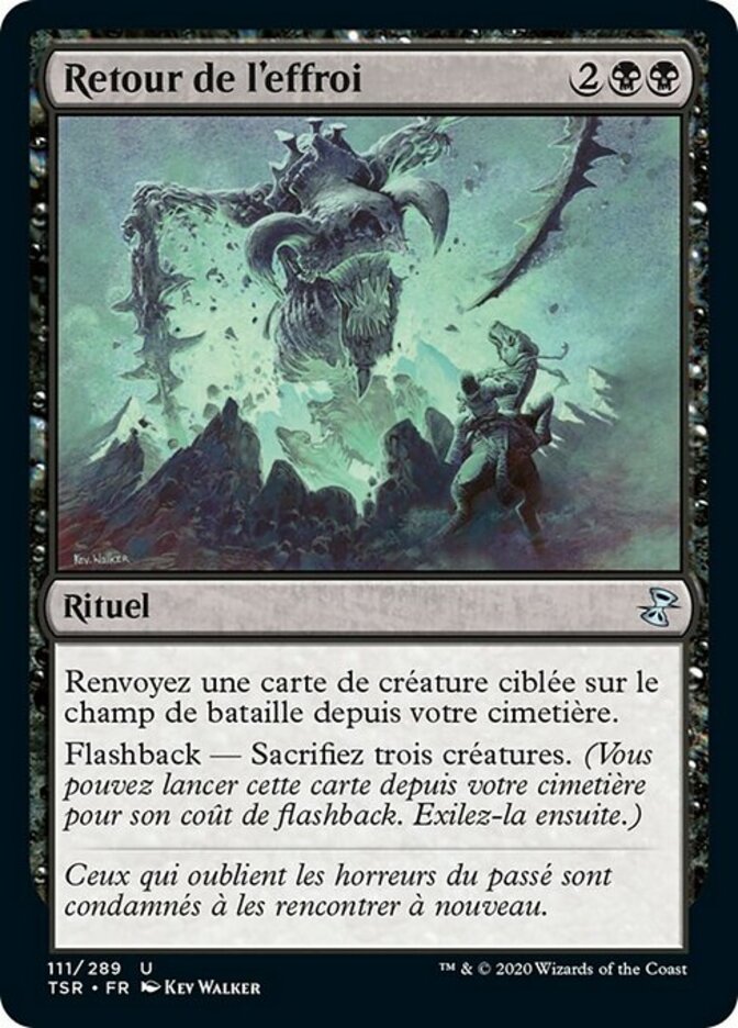 | Rules | Return target creature card from your graveyard to the battlefield. Flashback—Sacrifice three creatures. (You may cast this card from your graveyard for its flashback cost. Then exile it.) |