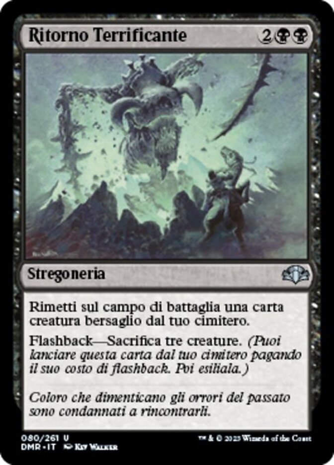 | Rules | Return target creature card from your graveyard to the battlefield. Flashback—Sacrifice three creatures. (You may cast this card from your graveyard for its flashback cost. Then exile it.) |