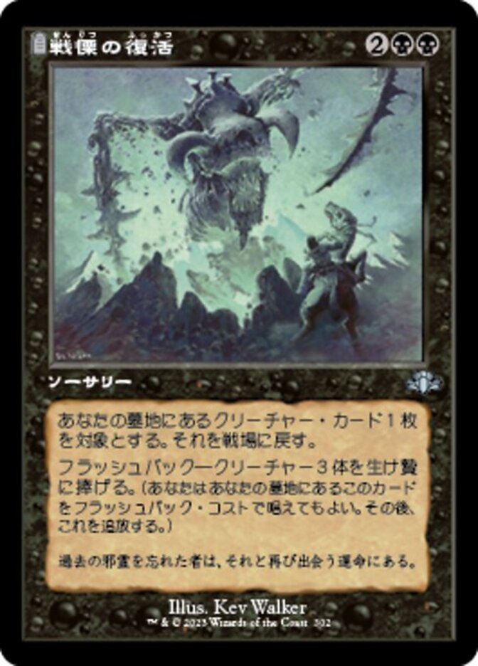 | Rules | Return target creature card from your graveyard to the battlefield. Flashback—Sacrifice three creatures. (You may cast this card from your graveyard for its flashback cost. Then exile it.) |