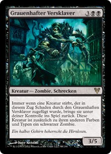 | Rules | Whenever a creature dealt damage by Dread Slaver this turn dies, return it to the battlefield under your control. That creature is a black Zombie in addition to its other colors and types. |