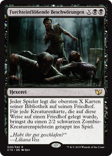 | Rules | Each player mills X cards. For each creature card put into a graveyard this way, you create a tapped 2/2 black Zombie creature token. |