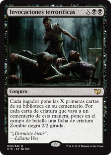 | Rules | Each player mills X cards. For each creature card put into a graveyard this way, you create a tapped 2/2 black Zombie creature token. |