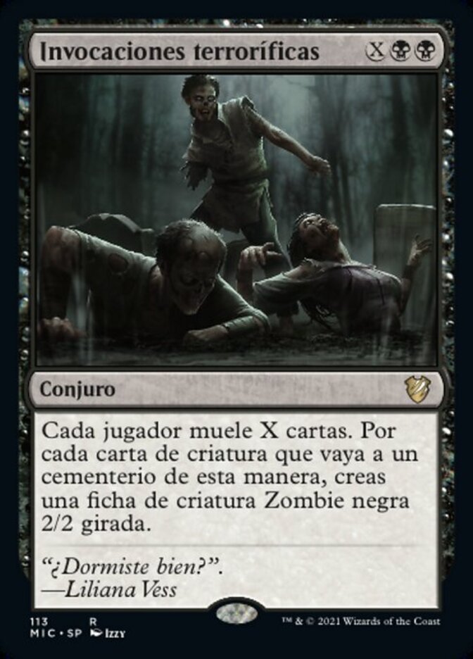 | Rules | Each player mills X cards. For each creature card put into a graveyard this way, you create a tapped 2/2 black Zombie creature token. |