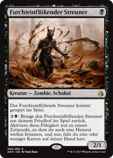| Rules | Dread Wanderer enters the battlefield tapped. : Return Dread Wanderer from your graveyard to the battlefield. Activate only as a sorcery and only if you have one or fewer cards in hand. |