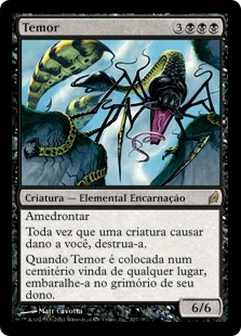| Rules | Fear (This creature can't be blocked except by artifact creatures and/or black creatures.) Whenever a creature deals damage to you, destroy it. When Dread is put into a graveyard from anywhere, shuffle it into its owner's library. |
