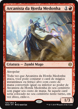 | Rules | Trample Whenever Dreadhorde Arcanist attacks, you may cast target instant or sorcery card with mana value less than or equal to Dreadhorde Arcanist's power from your graveyard without paying its mana cost. If that spell would be put into your graveyard this turn, exile it instead. |