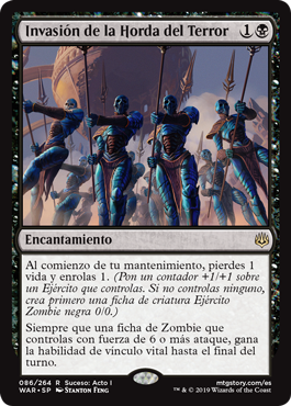 | Rules | At the beginning of your upkeep, you lose 1 life and amass 1. (Put a +1/+1 counter on an Army you control. If you don't control one, create a 0/0 black Zombie Army creature token first.) Whenever a Zombie token you control with power 6 or greater attacks, it gains lifelink until end of turn. |