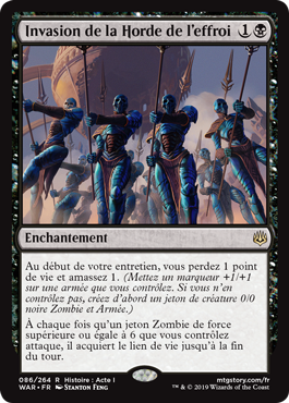 Rules At the beginning of your upkeep, you lose 1 life and amass 1. (Put a +1/+1 counter on an Army you control. If you don't control one, create a 0/0 black Zombie Army creature token first.)