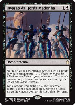 | Rules | At the beginning of your upkeep, you lose 1 life and amass 1. (Put a +1/+1 counter on an Army you control. If you don't control one, create a 0/0 black Zombie Army creature token first.) Whenever a Zombie token you control with power 6 or greater attacks, it gains lifelink until end of turn. |
