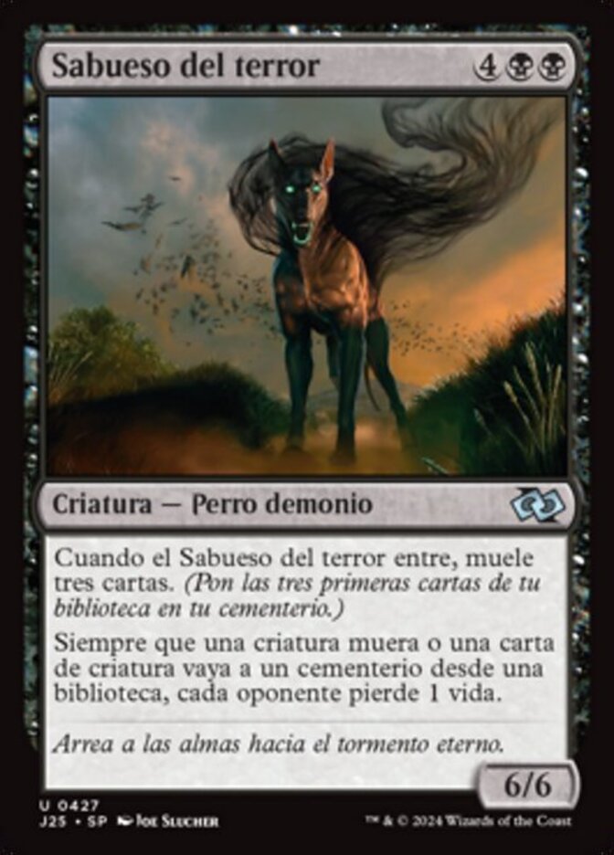 | Rules | When Dreadhound enters the battlefield, mill three cards. (Put the top three cards of your library into your graveyard.) Whenever a creature dies or a creature card is put into a graveyard from a library, each opponent loses 1 life. |